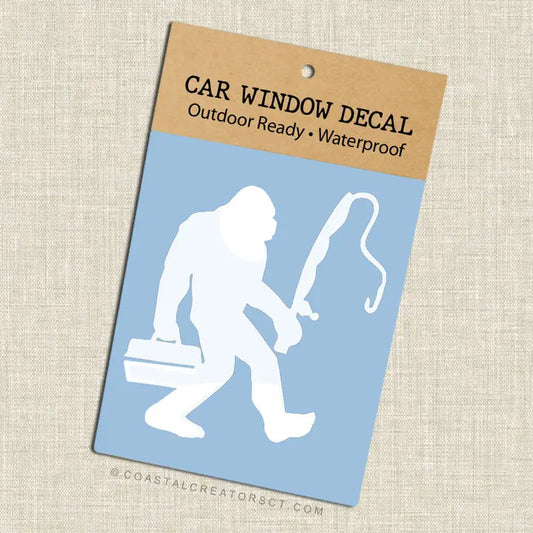 Bigfoot Sasquatch Gone Fishing Window Decal - White